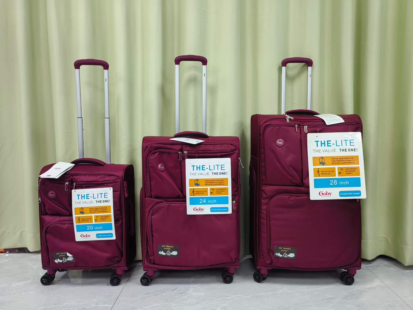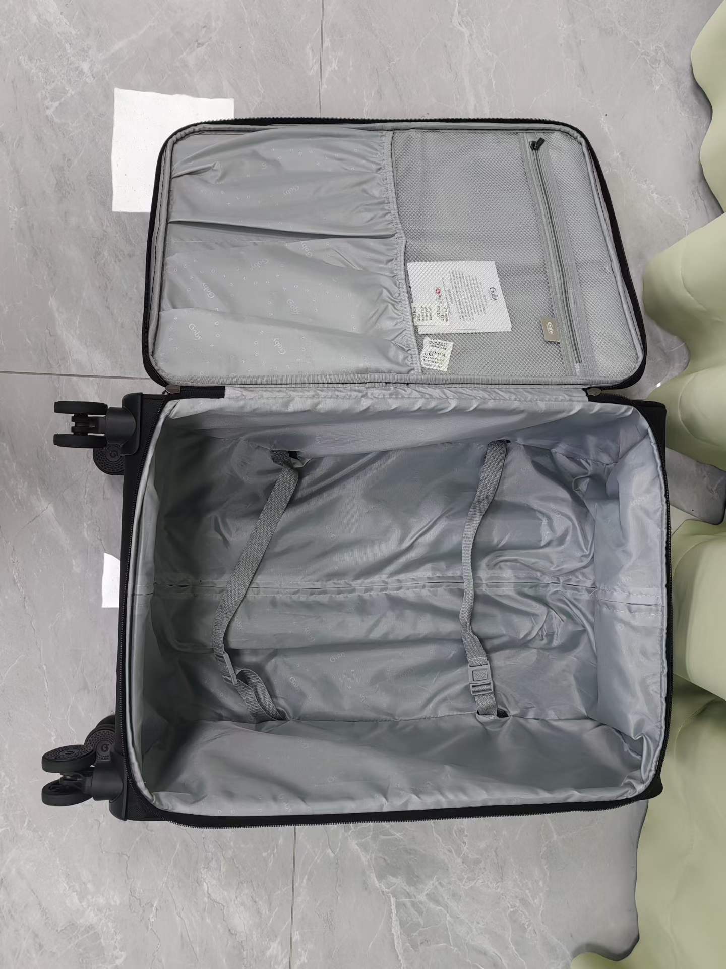 چمدان برزنتی گابی لندن،ساخت چین، برزنت بسیار مرغوب و مقاوم به نفوذ آب و خط وخش، دارای پارت لباس خیس بصورت جیب مجزا جلوی چمدان، دارای پارت حفظ دما عایق بدون امکان رد شدن حرارت برای حفظ دمای لوازم منجمد یا داغ بصورت ایزوله بصورت جیب مجزا کنار چمدان،دارای قفل بین المللیtsa, چرخهای۳۶۰سایلنت، دسته آلمینیوم، زیرکار یک لایه ppجهت استحکام و حفظ قالب، فنر کشی فولاد ضدزنگ جهت حفظ فرم چمدان دارای ۳سایز
