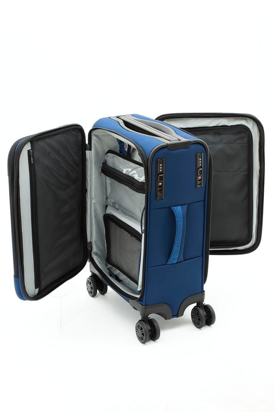 چمدان ام اند ای آمریکا، m&a اصل، ساخت چین دارای ضمانت اصالت کالا، ام ان ای خالق چمدانهای دسته سرتاسری میباشد و این مدل دارای دسته یک تکه سرتاسری آلمینیومی میباشد همچنین این چمدان دوطرفه هست بصورتی که فضای هرطرف قابل تنظیم و دوطرف دارای قفل tsaبینالمللی و کابل شارژر و صدا هست، جنس چمدان بصورت سافت هارد میباشد که زیر برزنت چمدان یک لایه pp کار شده برای حفظ قالب چمدان و محافظت از لوازم داخل چمدان، دارای پارت لباس خیس، پارت مدارک، محافظ لپتاپ، چرخهای انتی شاک سایلنت۳۶۰، برزنت بسیار با کیفیت مقاوم به خط و خش و نفوذ آب، و یک لایه pp زیر کار جهت حفظ قالب و ضربه گیری