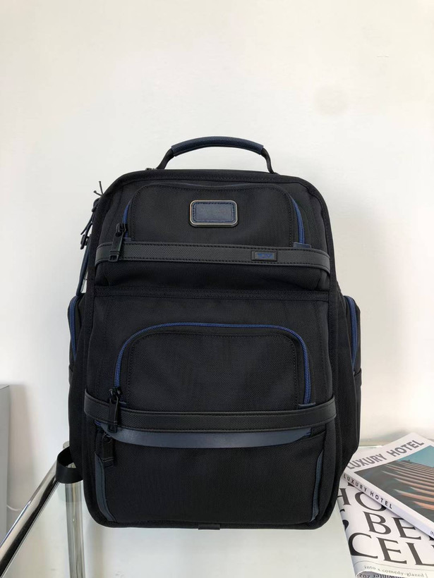 کوله پشتی tumi alpha3 تومی آریکا مدل آلفا۳ مشکی با خطوط سرمهای، یک کوله همه چیز تمام برای سخت پسندترین و ریزبین ترین هاست، این کوله از مرغوب ترین برزنت و چرم ممکن ساخته شده که آنره مقاوم به خش و برش میکند و در عین حال ظرافت و زیبایی کاملا حفظ شده، دارای بندهای دوشی و پد پشت کمر طبی، جای نگهدارنده روی چمدان، دسته چرمی برای حمل دستی، پارت مجزا لپتاپ با پد محافظ مخصوص، پارتیشن بندی بینظیر جهت جاگذاری لپتاپ تبلت لوازم شخصی لوازم تحریر و هر چه برای استفاده روزمره و سفر نیاز است، زیپهای دانه درشت با کیفیت، پارت خیس برای قمقمه یا وسیله خیس، دو قسمت مجزا اصلی و قسمتهای مختلف جزئی، نکات ریز را در عکسها ببینید