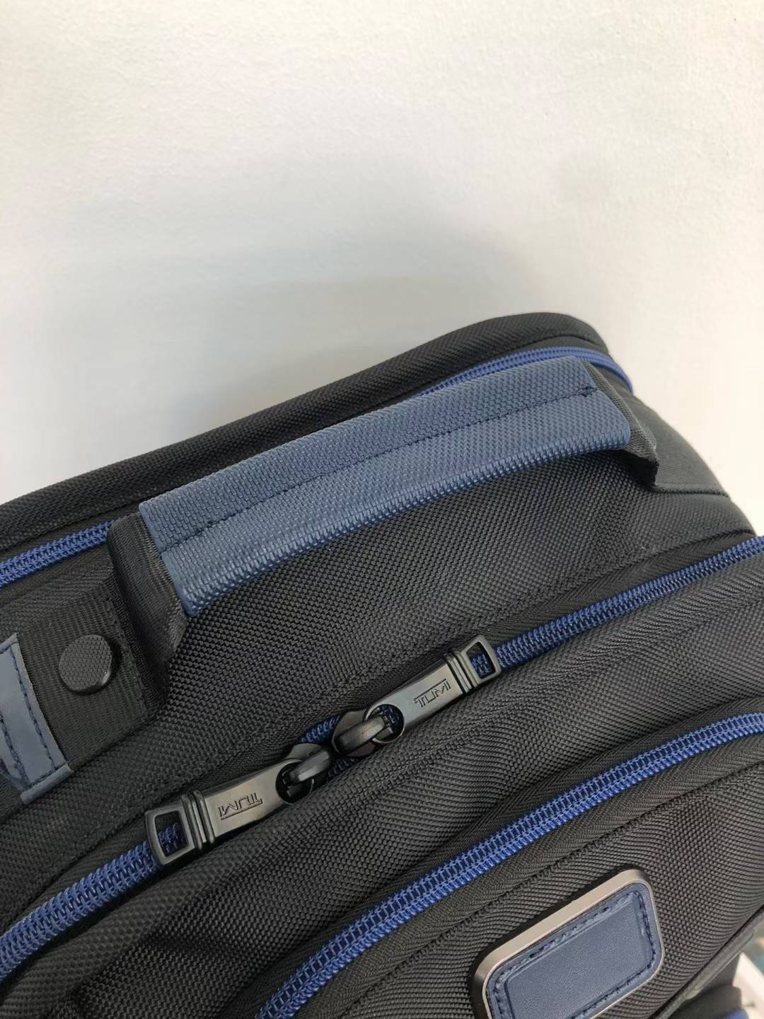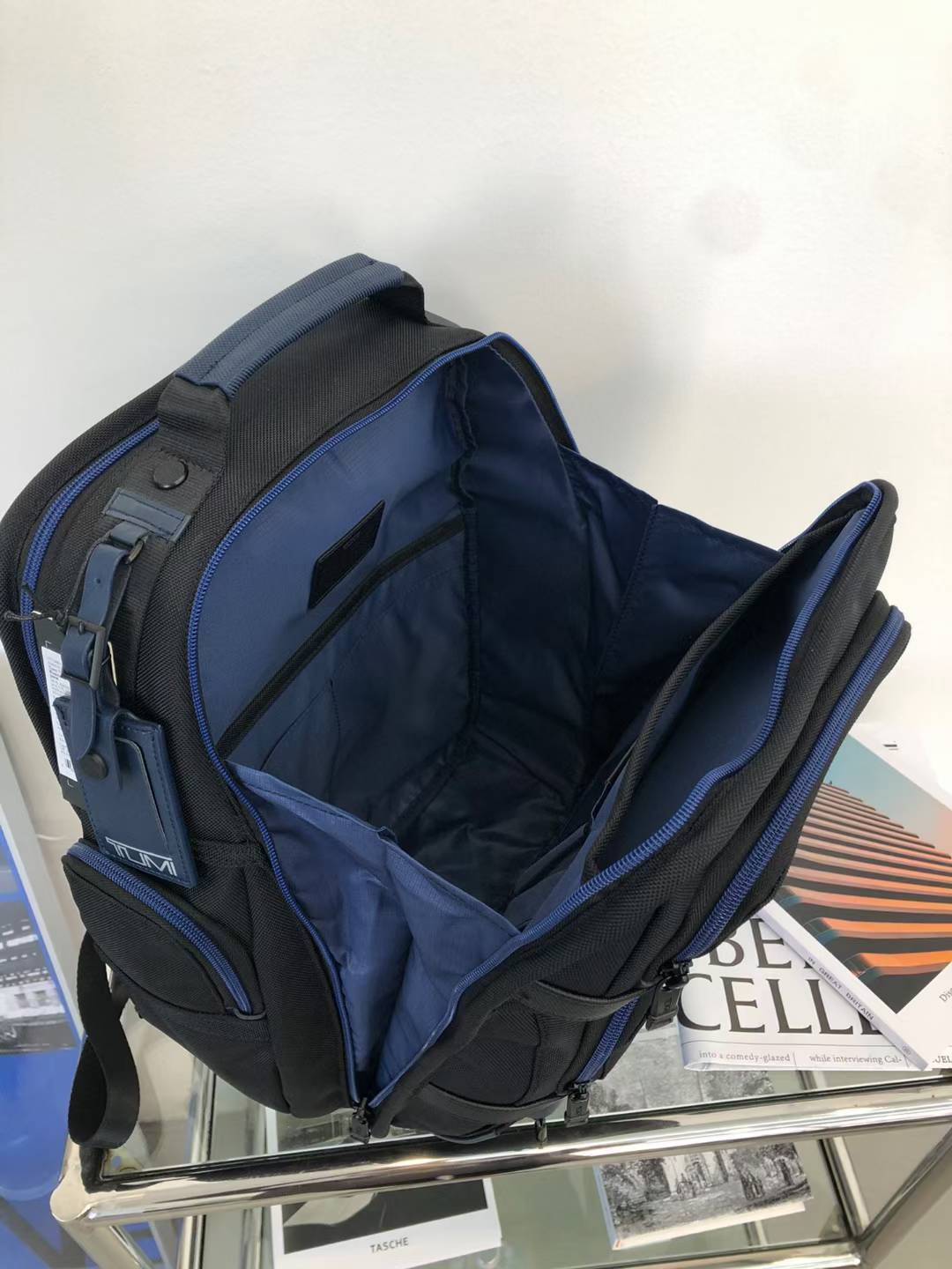 کوله پشتی tumi alpha3 تومی آریکا مدل آلفا۳ مشکی با خطوط سرمهای، یک کوله همه چیز تمام برای سخت پسندترین و ریزبین ترین هاست، این کوله از مرغوب ترین برزنت و چرم ممکن ساخته شده که آنره مقاوم به خش و برش میکند و در عین حال ظرافت و زیبایی کاملا حفظ شده، دارای بندهای دوشی و پد پشت کمر طبی، جای نگهدارنده روی چمدان، دسته چرمی برای حمل دستی، پارت مجزا لپتاپ با پد محافظ مخصوص، پارتیشن بندی بینظیر جهت جاگذاری لپتاپ تبلت لوازم شخصی لوازم تحریر و هر چه برای استفاده روزمره و سفر نیاز است، زیپهای دانه درشت با کیفیت، پارت خیس برای قمقمه یا وسیله خیس، دو قسمت مجزا اصلی و قسمتهای مختلف جزئی، نکات ریز را در عکسها ببینید
